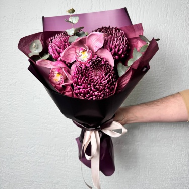 Букет из хризантем Бигуди и Орхидей